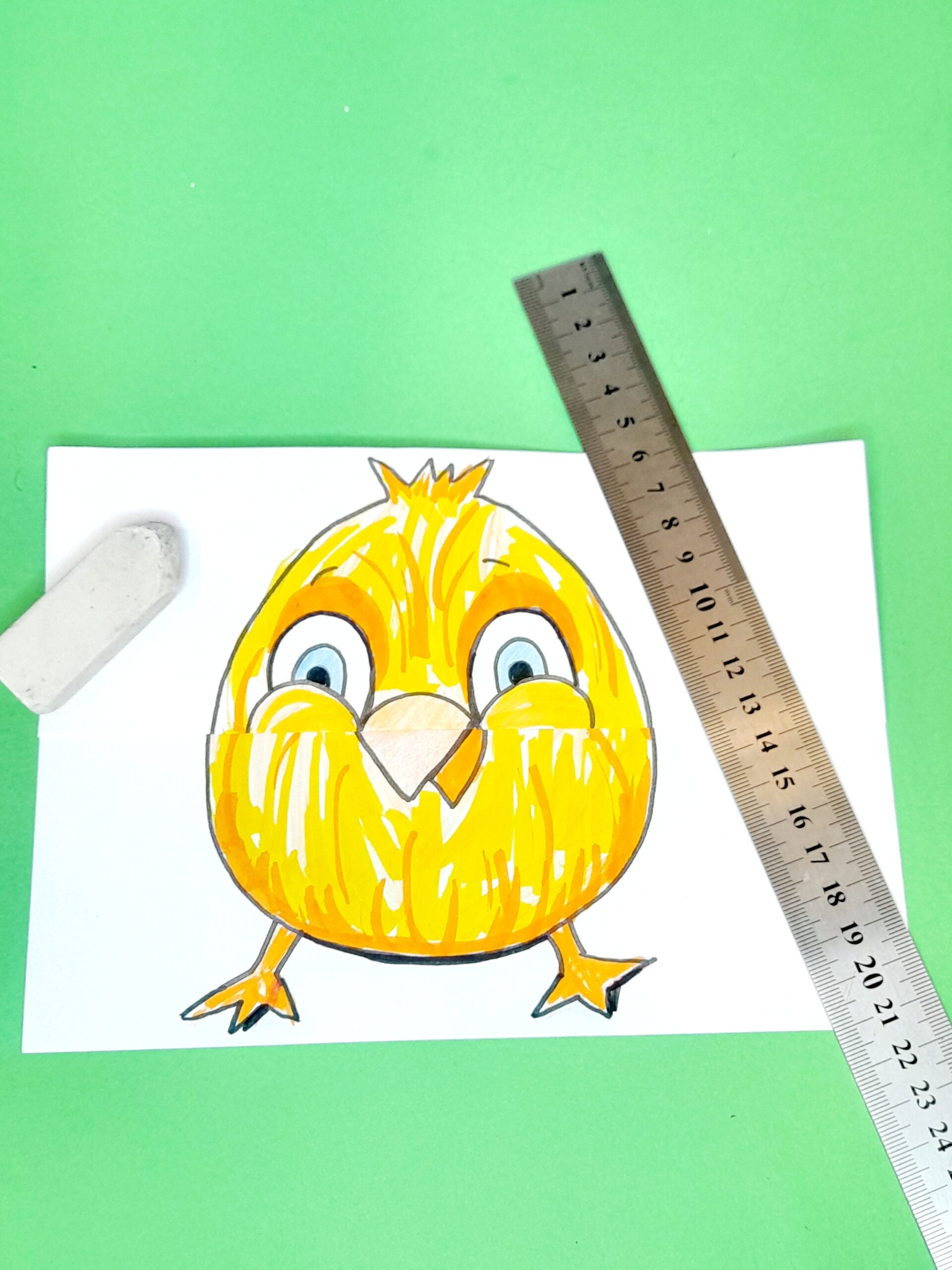 - Copy similar features as shown or do your own version, then add 2 chick feet at the bottom of the chick.