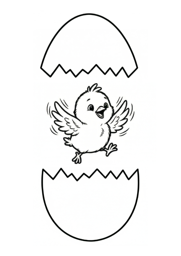 - Once you are happy with your black and white outline of the chick and inside its mouth, you can colour your chick how you like.
