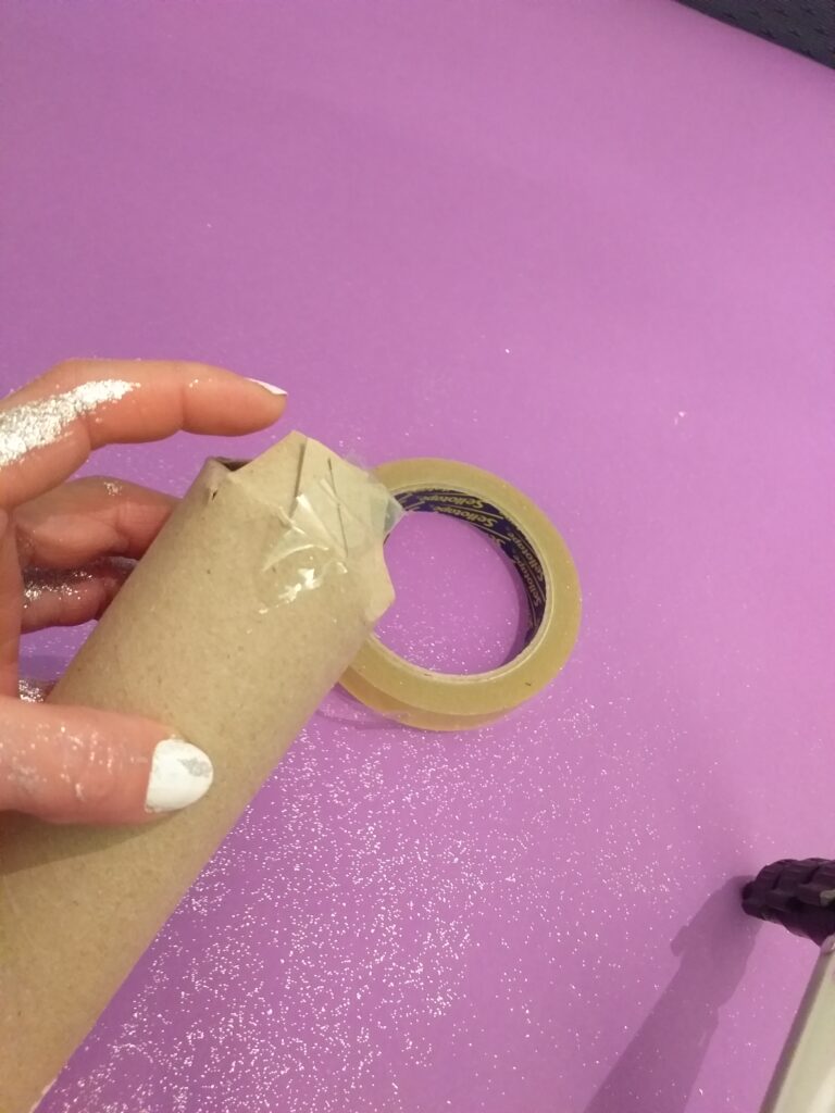 - Another way to do the extension would be to glue the crepe paper around the bottom of the tube first, so you get the sticky part out of the way.