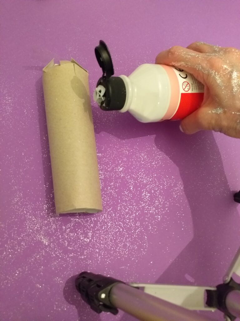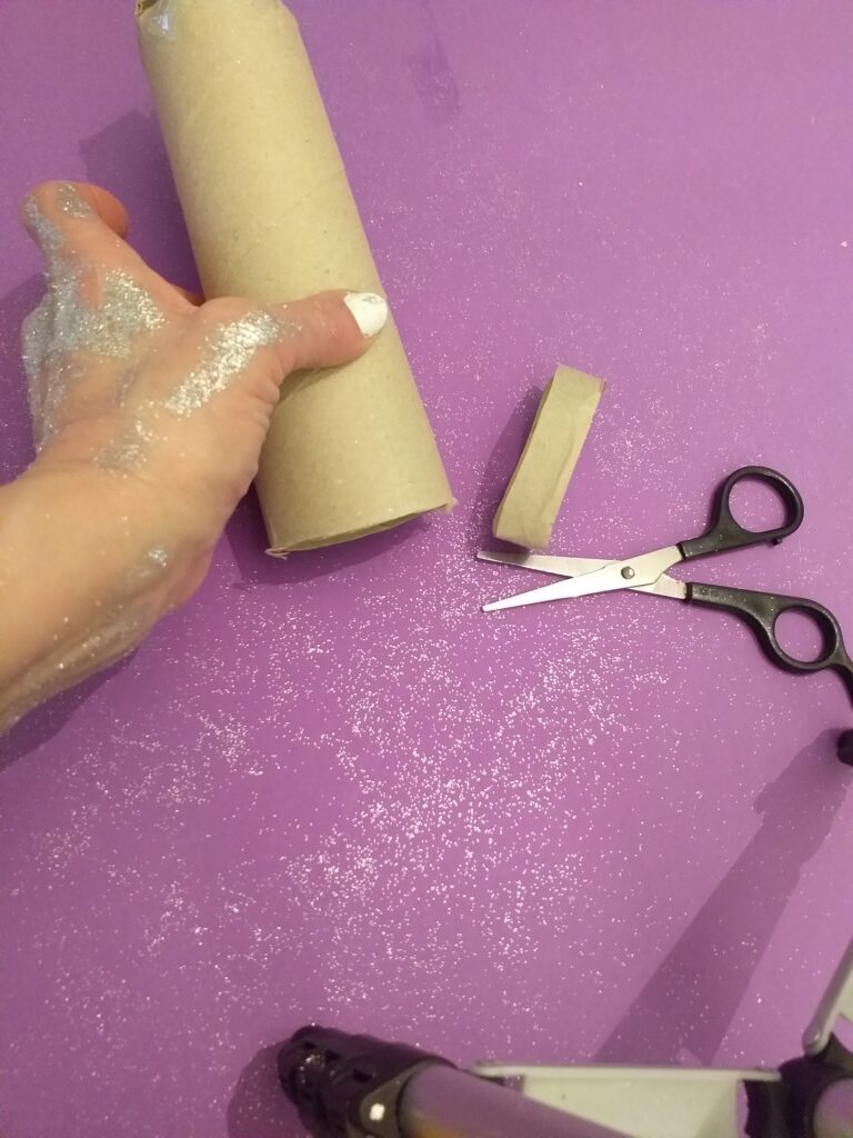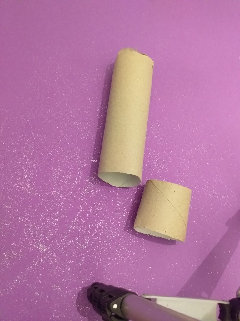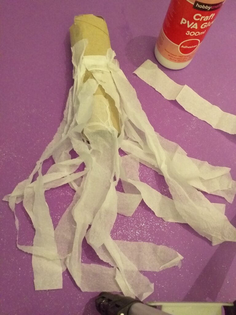 - Repeat phase 1 (easy version) This time the inner tube has less cut off the bottom, so you have the length for the body to glue the strips of cut crepe paper around it.