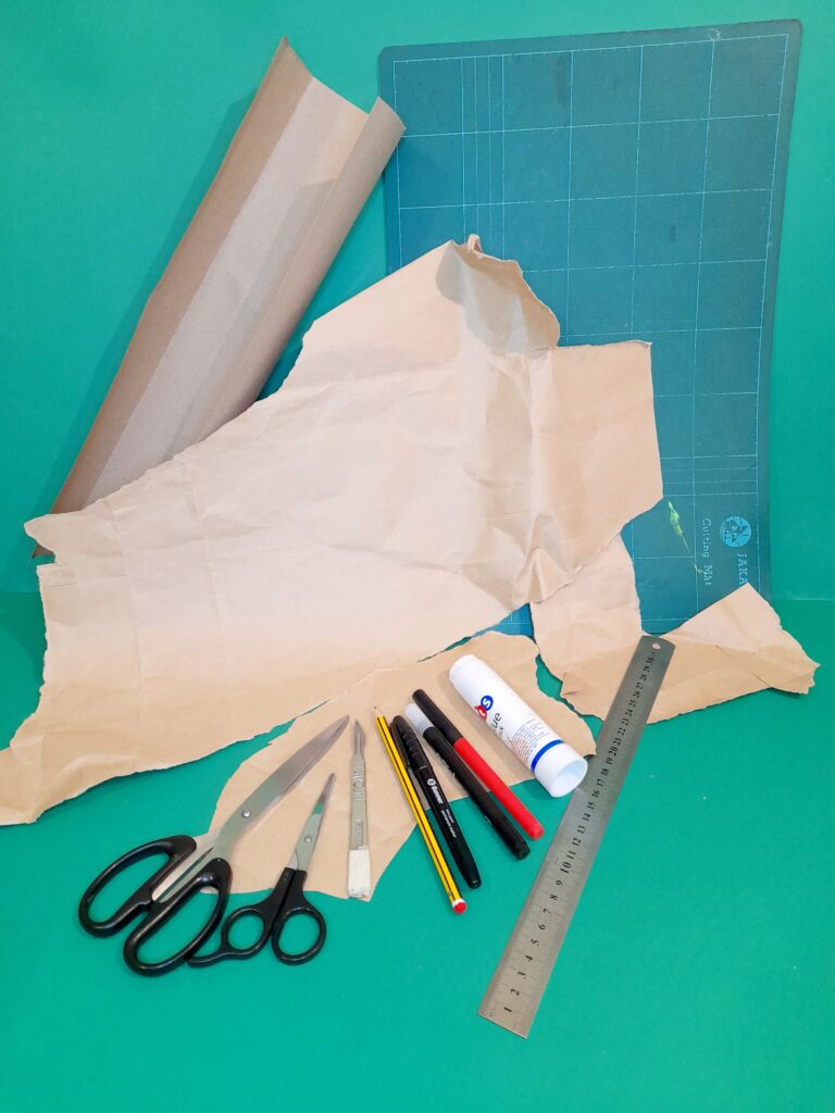 - There are different types of brown packaging papers; use the heavier type that isn’t too soft to work with, but thick enough to stay firm.