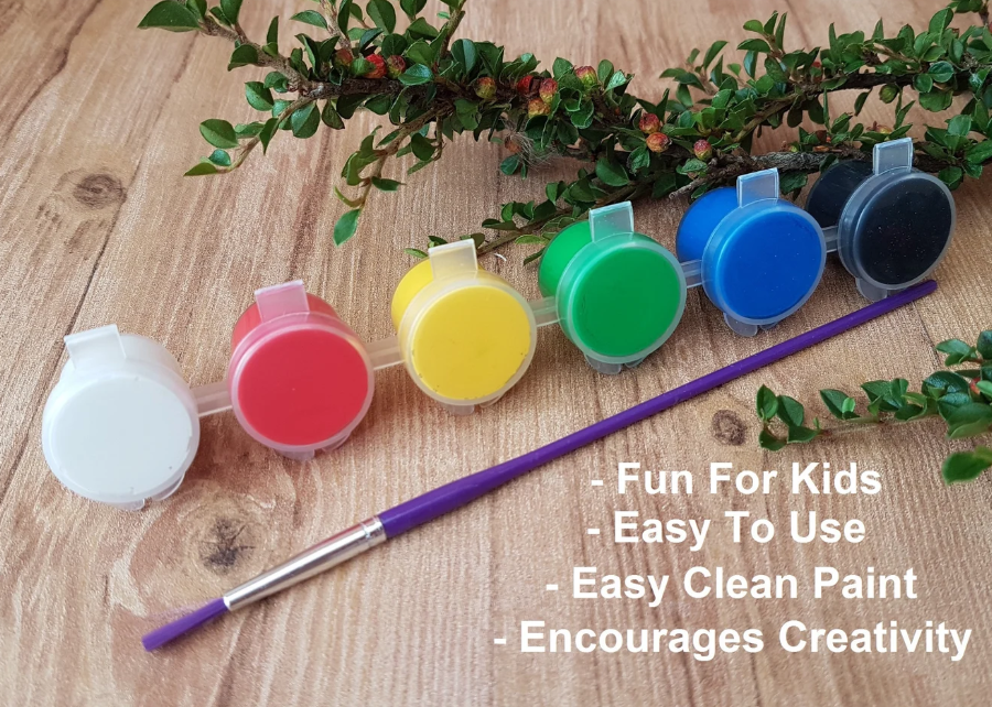 You choose if you want paints and or glitter. There are 6 vivid acrylic paints, a paintbrush and instructions. Your kids will have fun deciding how or what to paint on the turtle.
