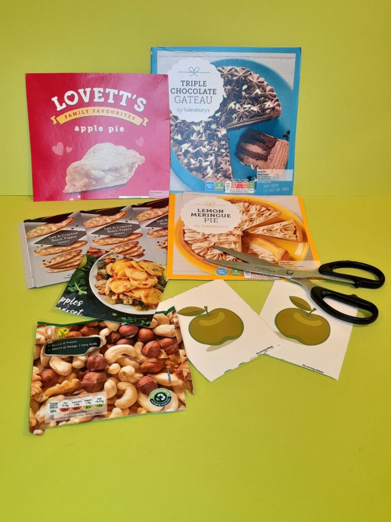 So I am going to make Valentine’s cards, using the images from the food packaging, and have some fun matching up messages inside the card that complement the image on the front of the card.