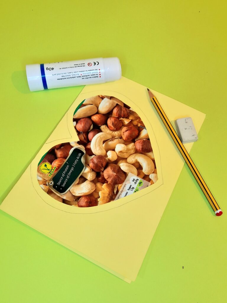 Have a good look around and try to find what’s within your recycling bag, but also hold on to what’s within your cupboards, so if it would make a good Valentine’s subject, save it!