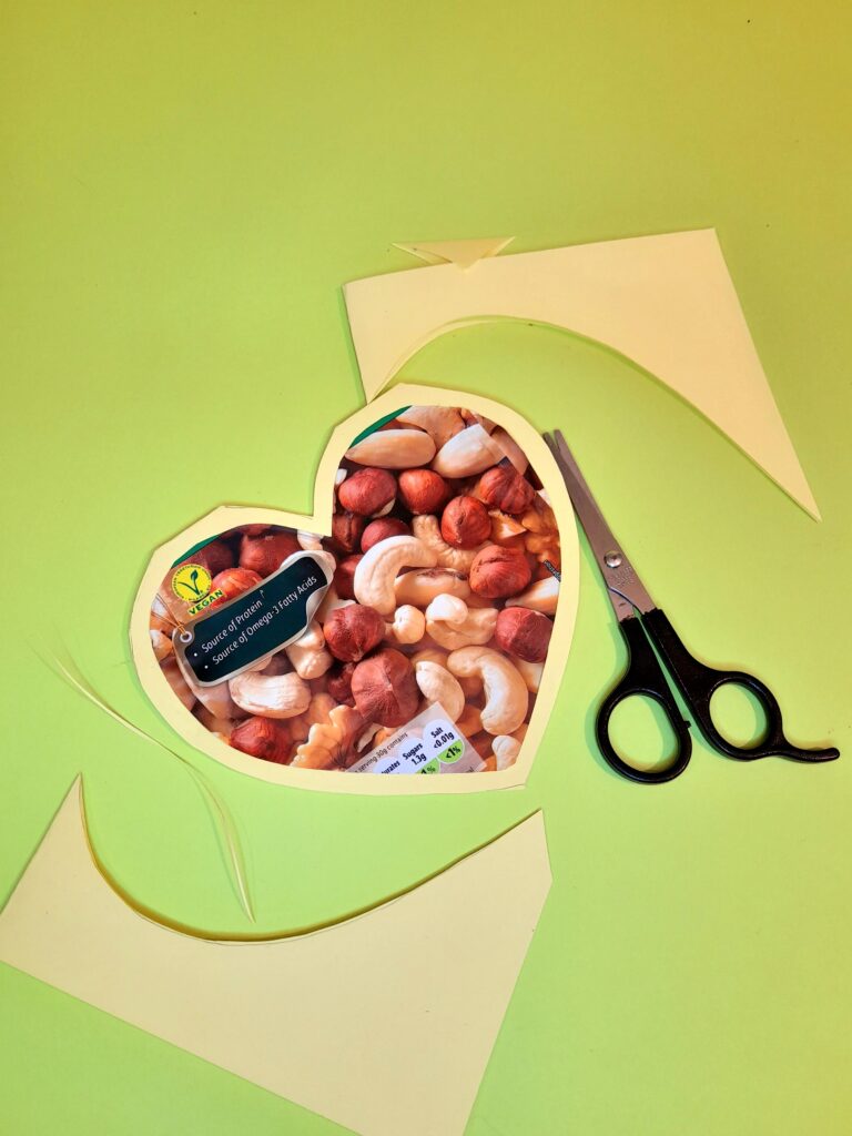 This is what I pulled out of my recycling bag: general food packaging, like pizza, cake, and savoury containers, a collection of possibles that would work well around Valentine’s theme.