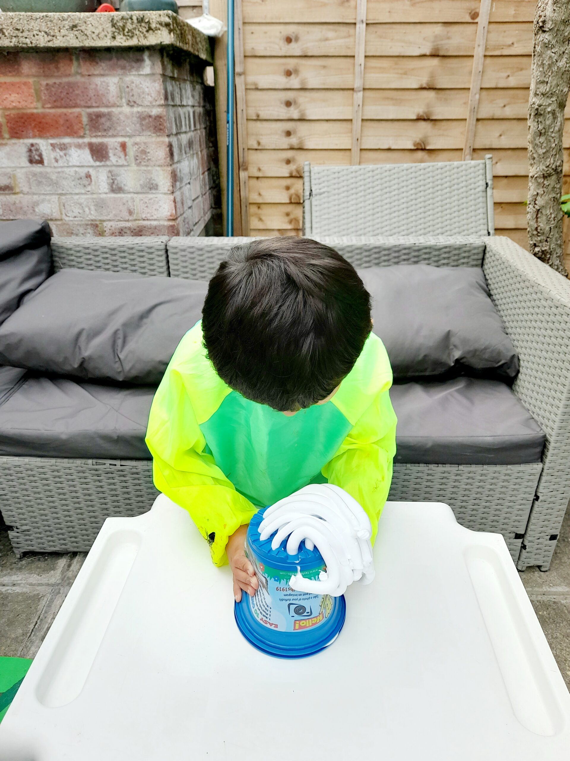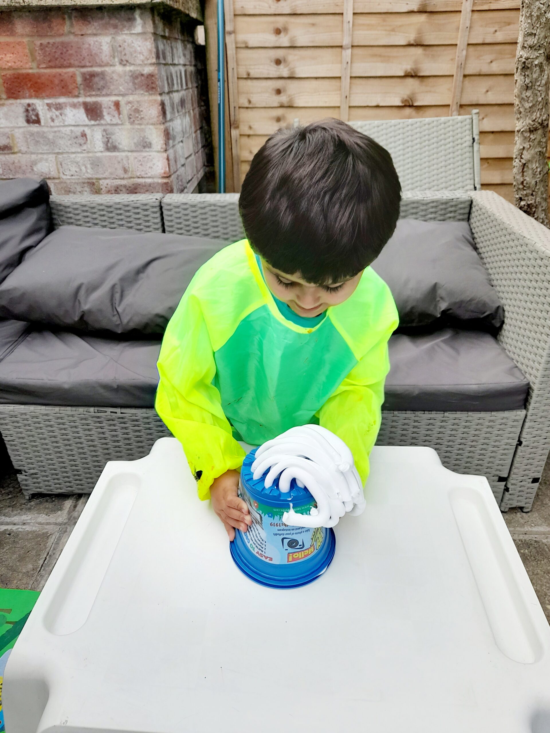 This is the second activity, which is best setting up outside in the garden area, or inside but cover floor with plastic or a towel, as it can get rather messy!